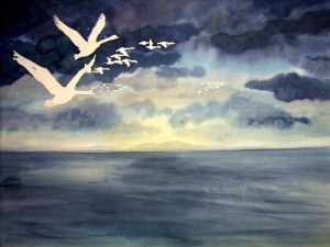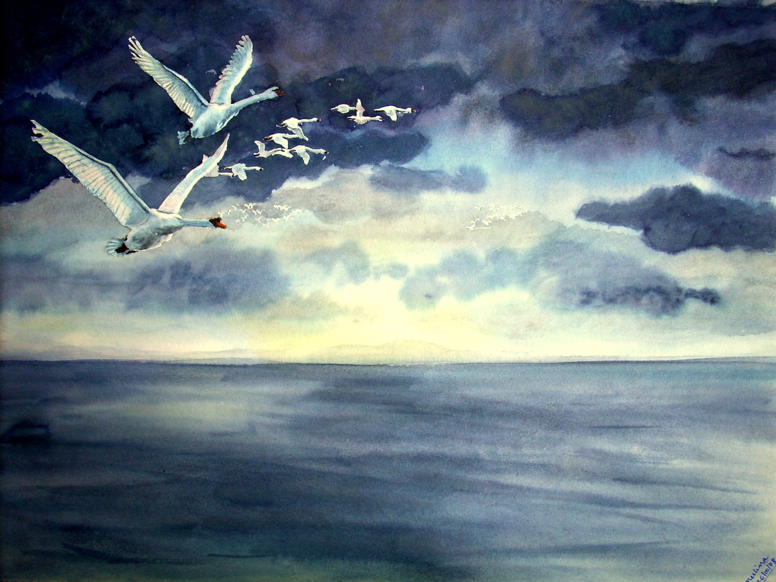 The migration in ‘The story of the swan’ series October 26, 2008April 7, 2009 Written by Neelima The vision of this painting is what inspired me to start this series. Here it is in progress… after I have removed the masking fluid applied on the swans to protect the whites: Here it is after completion: Share this post: Click to share on Pinterest (Opens in new window) Pinterest Click to share on Facebook (Opens in new window) Facebook Click to email a link to a friend (Opens in new window) Email Click to share on Pocket (Opens in new window) Pocket Click to share on Reddit (Opens in new window) Reddit Click to share on Tumblr (Opens in new window) Tumblr More Click to share on X (Opens in new window) X Click to share on LinkedIn (Opens in new window) LinkedIn Click to share on Telegram (Opens in new window) Telegram Like Loading... Related