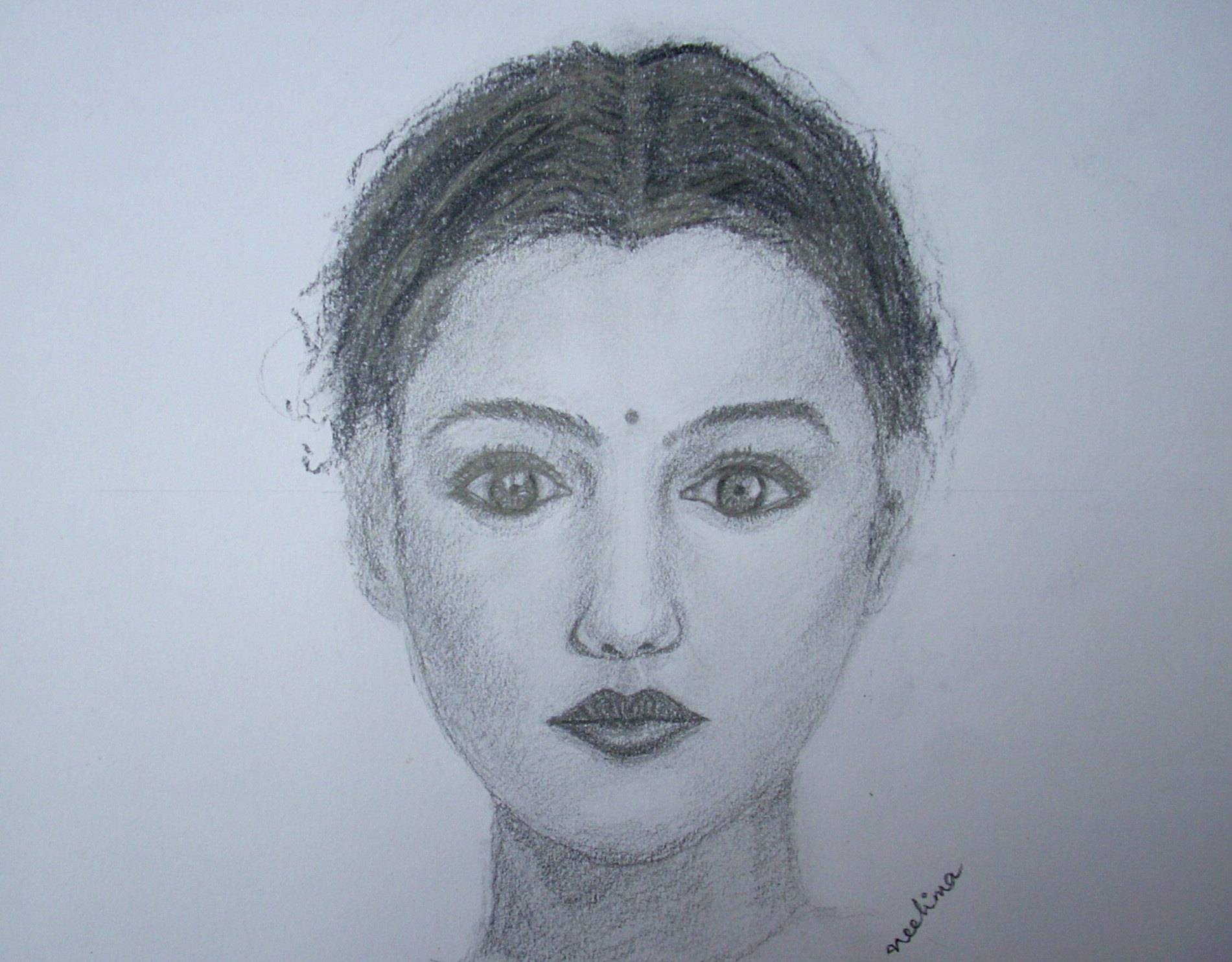 Phi is also found in the human body, like in the ratio of the forearm to the hand, in the spiral of the ear, in the DNA molecule… In fact, the occurence of phi is so common in nature that any form that is constructed based on these proportions is generally believed to be aesthetically pleasing too. For e.g in art, a canvas in the proportions of the golden ratio, can be sectioned again in this ratio lengthwise to get the horizon line. I`ve used them in this drawing of the human face; the length of the face:width of the face, the distance from the eyes to the chin:distance of the eyes to mouth, distance of eyes to mouth: distance of eyes to nose.