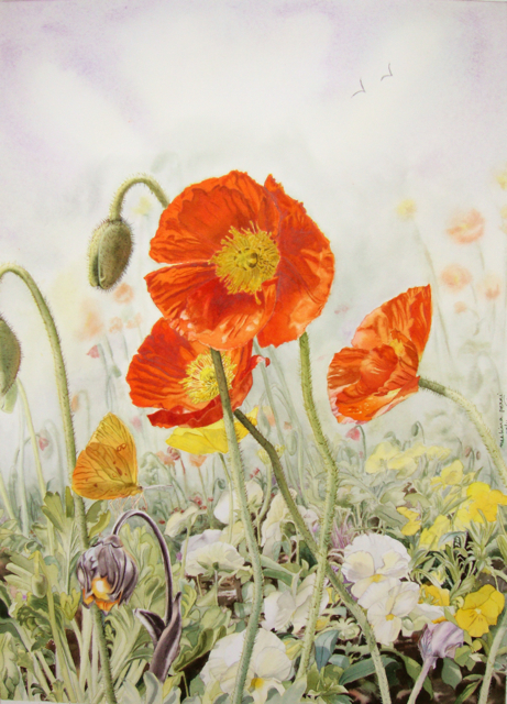 I finished the painting a while back, the background was a little daunting and I spent a few sleepless nights over it(!), the upper portion, though it is quite light must have atleast half a dozen layers on it.. I have only one in-between step here: