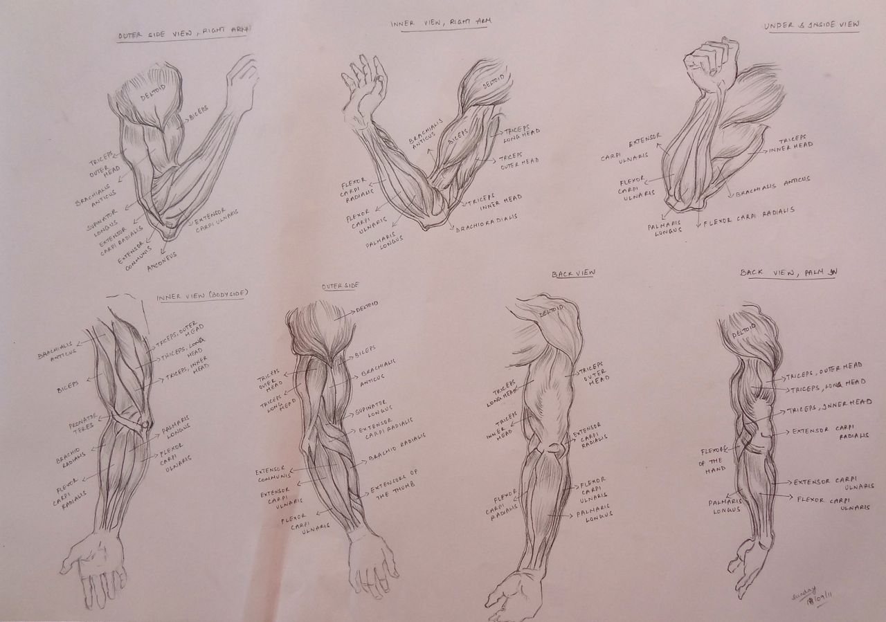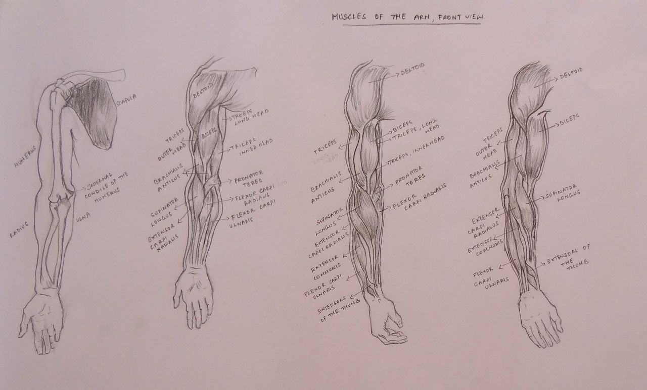I´ve included a link at the end of this post, its a video where the muscles of the arm are explained very nicely with a way to remember their names. I liked the small sketch he made, captioned ´stay with it´ a lot! It says a lot about how good a teacher he was, don´t you think?