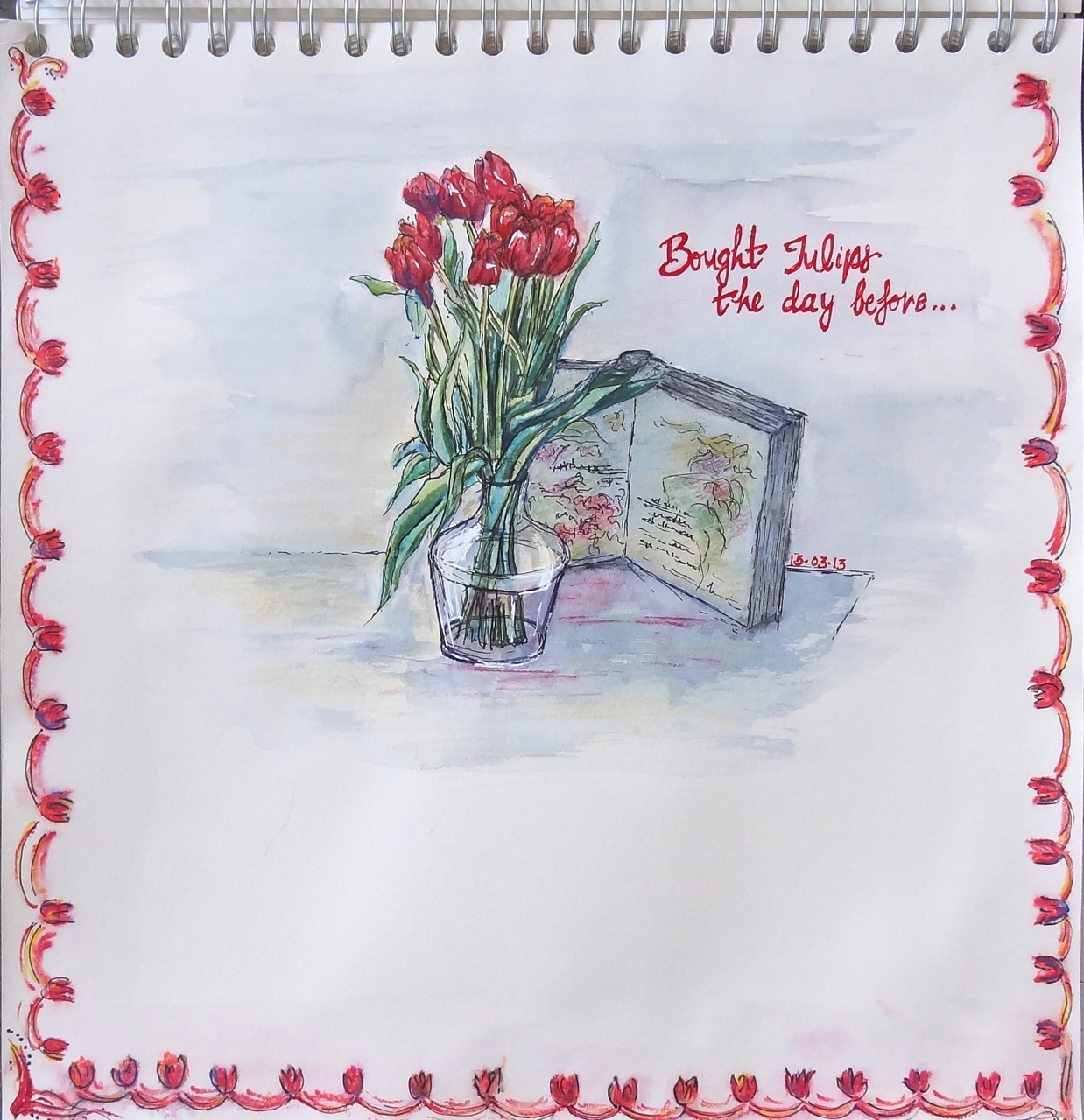 Love your sketches. Am working on my own sketching skills–not easy. Did you use watercolor pencils to paint the beautiful tulips?