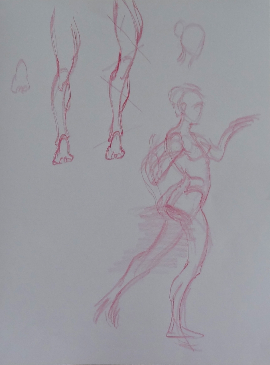 Have you tried the scribble method for initial lay-ins? Its very liberating, scribble across the form to get the initial gesture so that you can build forms over it…. it should be done very lightly not as dark as I have here: