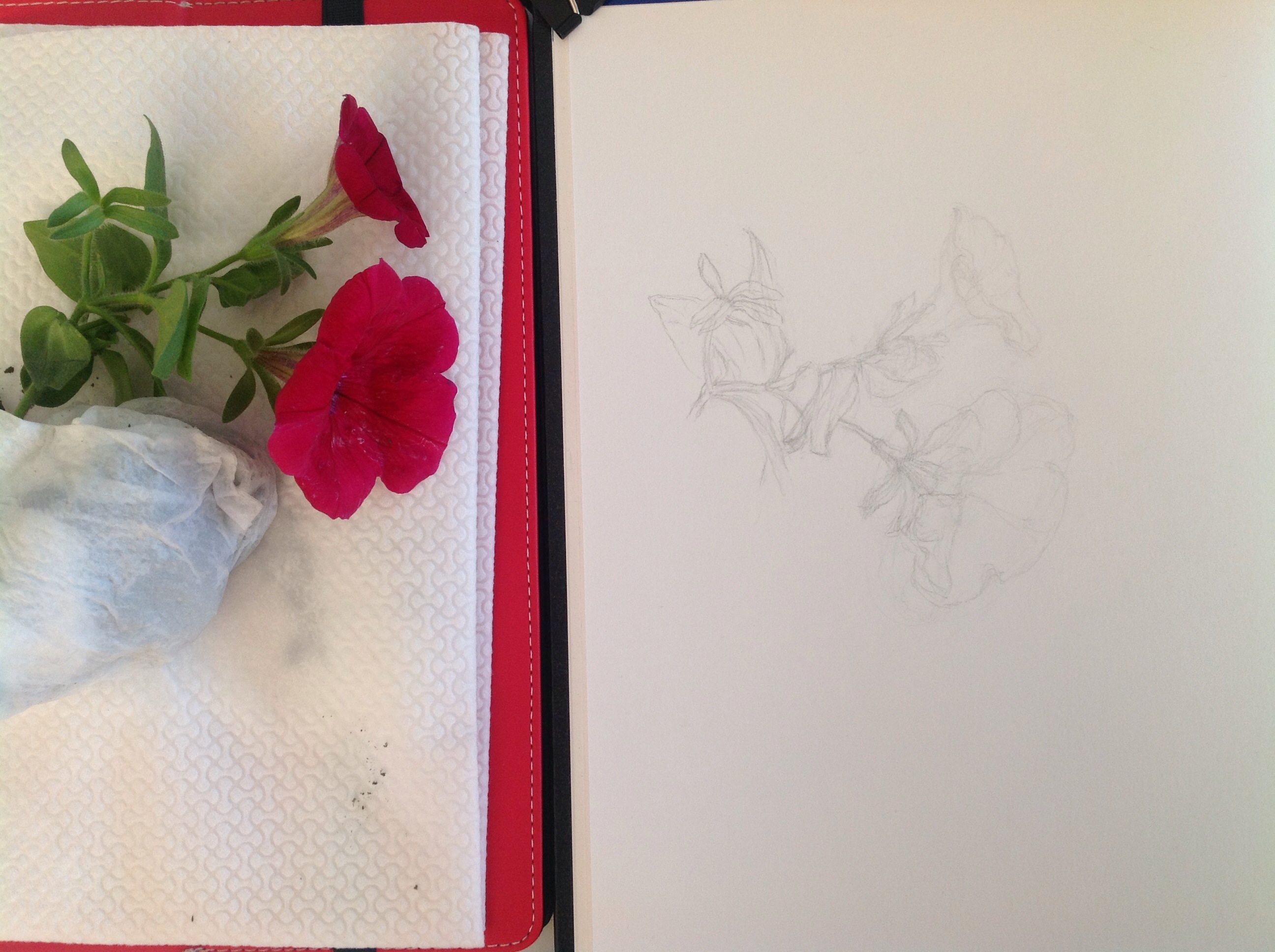 The flower is actually pinker (bluer) than the red that shows in the photo. I put the stem in floral foam so that it stays fresh for a longer time. Not sure that I am going to be able to finish it today.