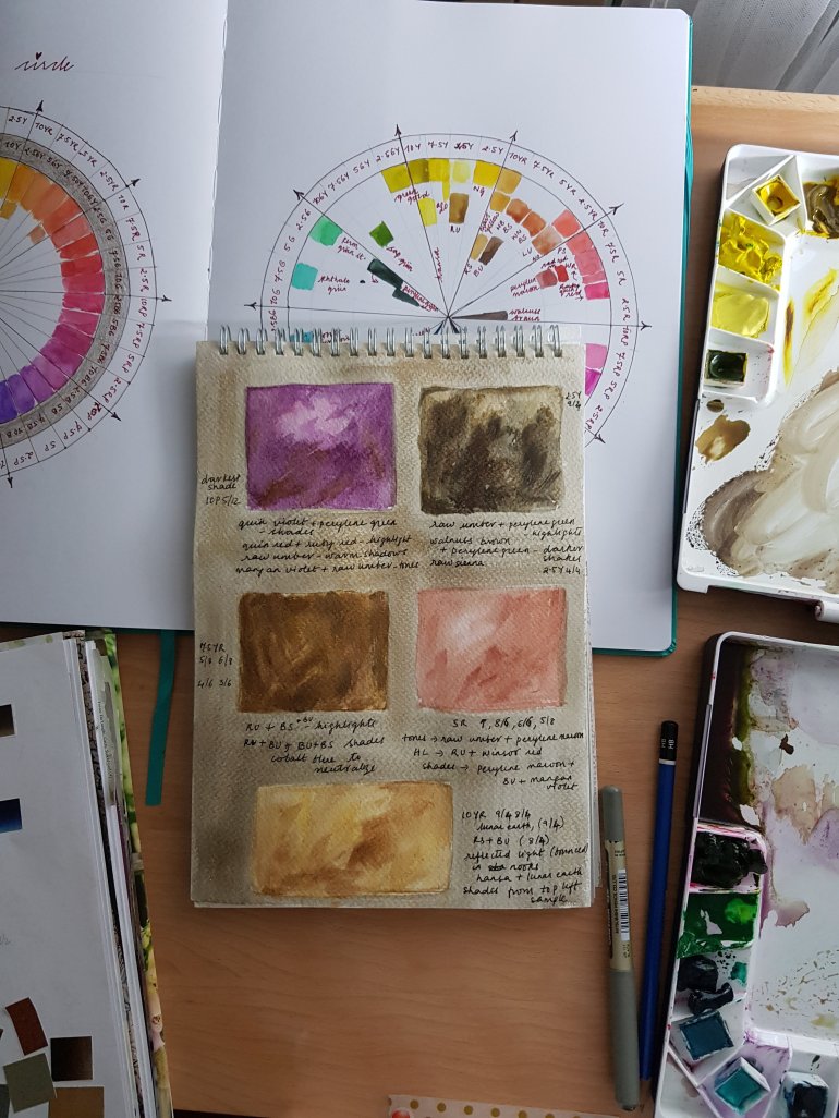 Just finished these color studies today. Each have a range of values in the same color family and I tried to shift the highlights and shadows to the adjacent or to the complementary color family. I feel I should have pushed them a bit more: