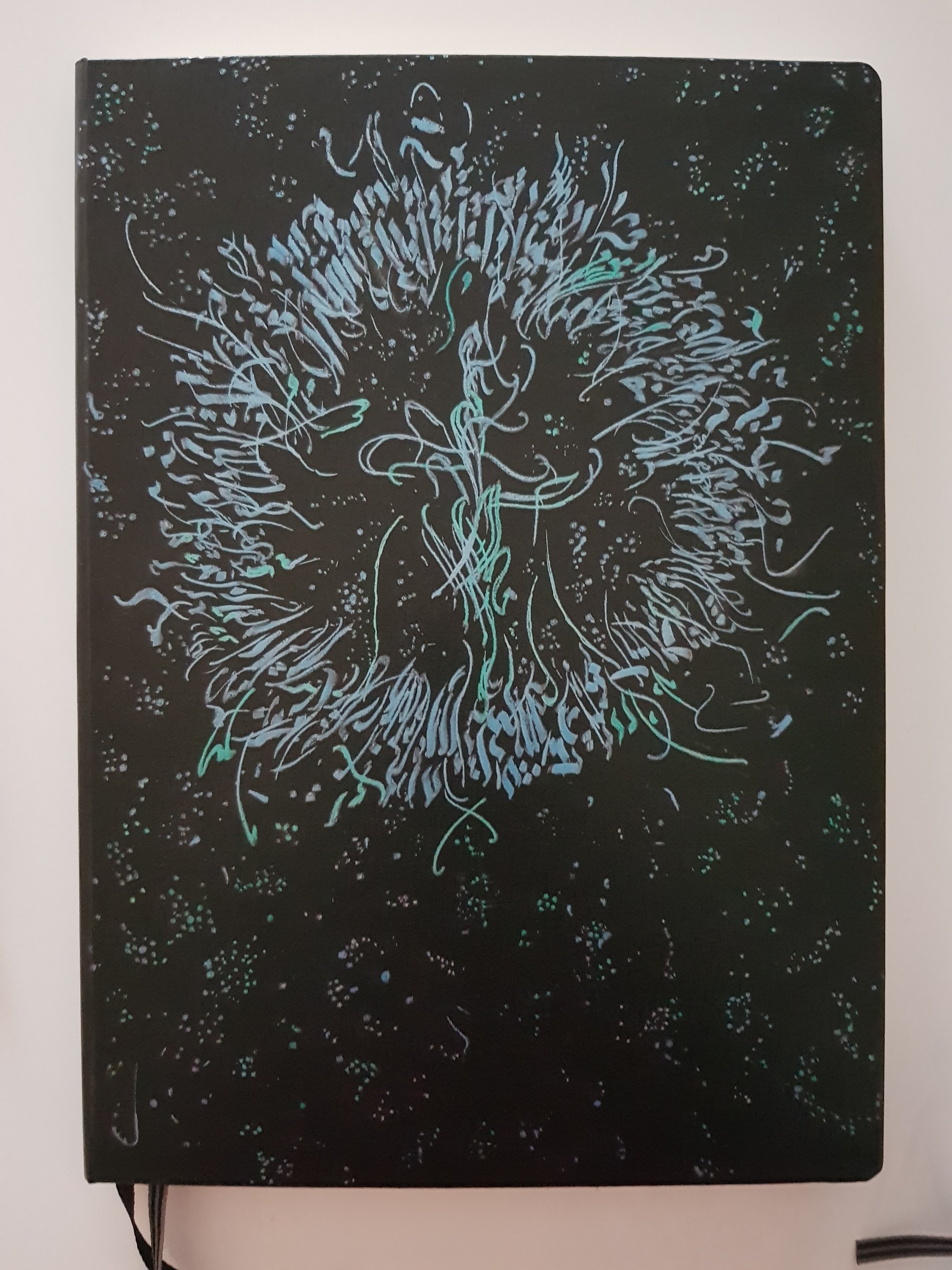 The one above, is inspired from a piece of beautiful Arabic calligraphy, I use for writing, analysis of master artist’s works , a project list , what works I want to paint and how etc