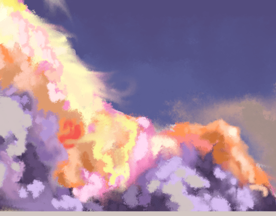Here`s how I made the moon originally, peering from behind the clouds, I like it a lot but finally scraped it off deciding that keeping the edges for the moon sharper and without the clouds, pulled the eye farther into the distance giving more depth to the picture.