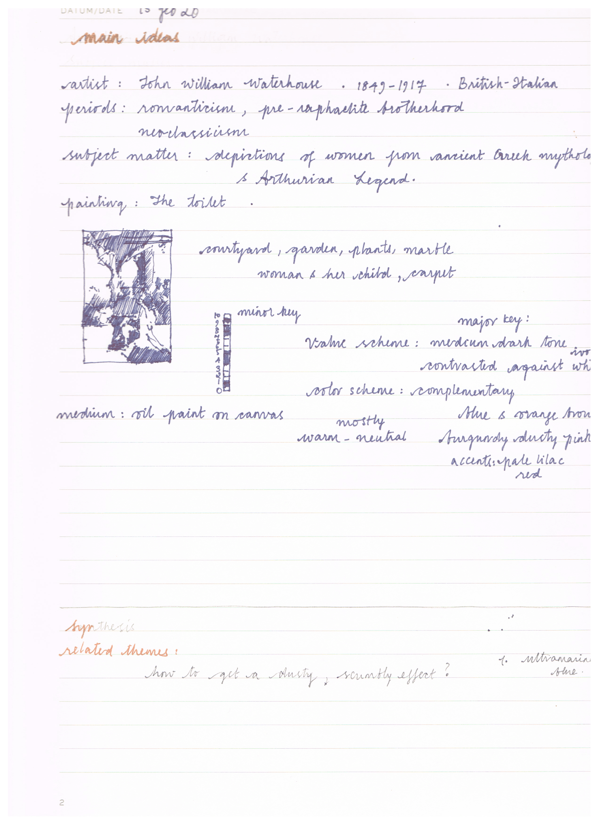 John William Waterhouse ,Artist analysis sketchbook page 1