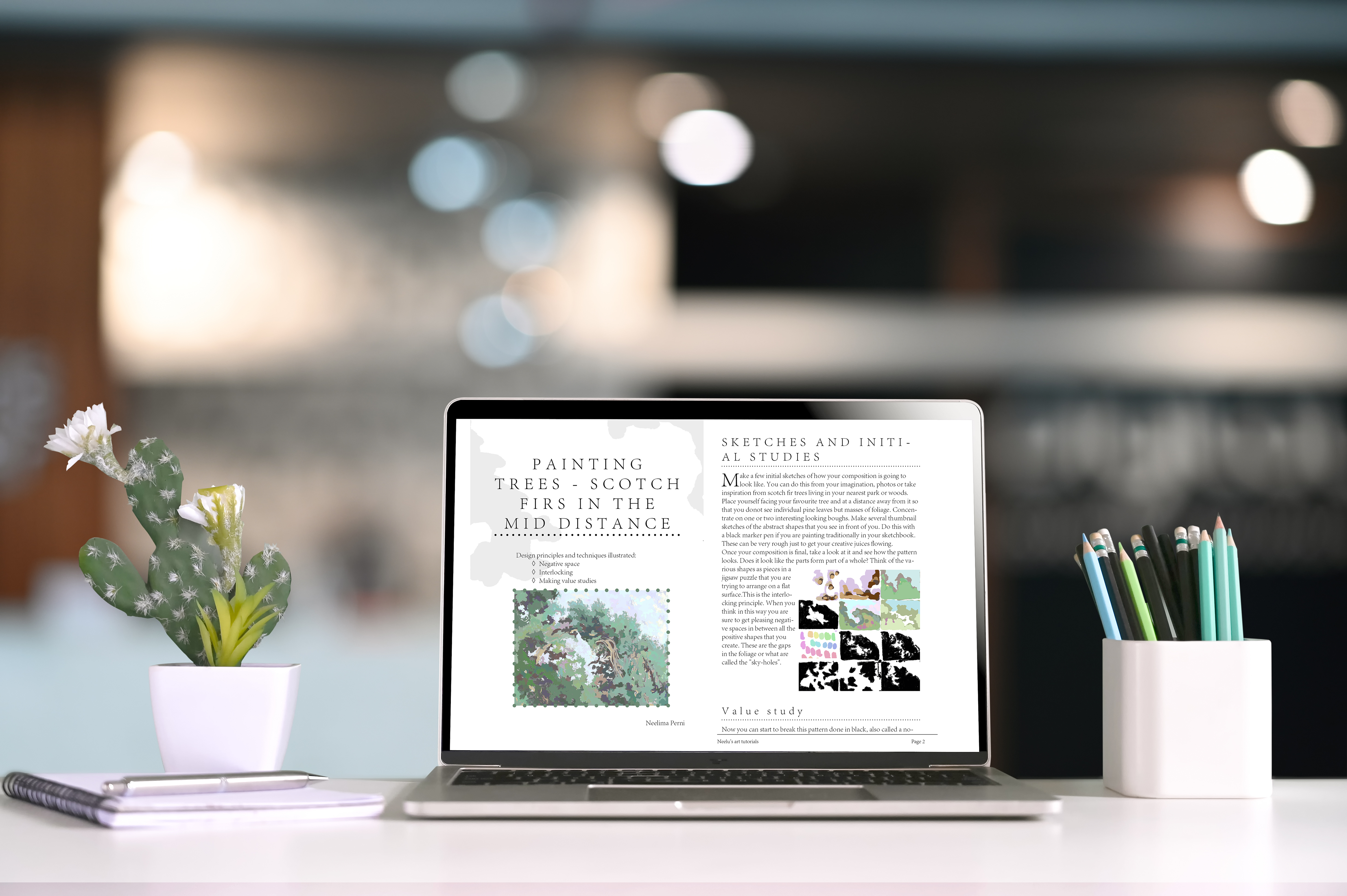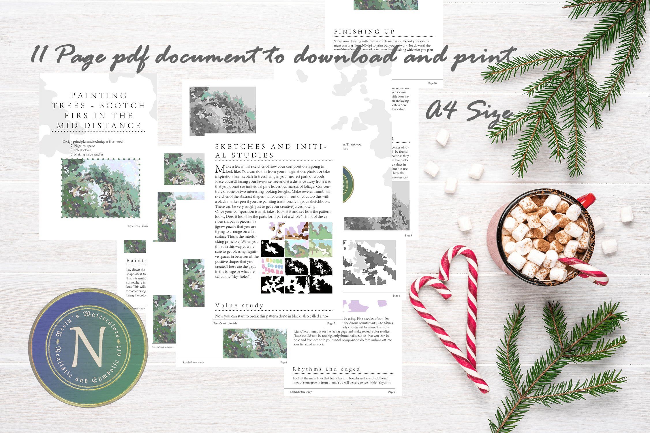 Art tutorial – Painting trees – scotch fir tree| 11 page pdf file art demo | Instant download pdf painting guide | A4 size for personal use 1 December 19, 2021 Written by Neelima Hi everyone, I have just finished designing and writing an art tutorial on painting Scotch fir trees. It’s in an A4 size pdf document format. Hope you like and find it useful. Share this post: Click to share on Pinterest (Opens in new window) Pinterest Click to share on Facebook (Opens in new window) Facebook Click to email a link to a friend (Opens in new window) Email Click to share on Pocket (Opens in new window) Pocket Click to share on Reddit (Opens in new window) Reddit Click to share on Tumblr (Opens in new window) Tumblr More Click to share on X (Opens in new window) X Click to share on LinkedIn (Opens in new window) LinkedIn Click to share on Telegram (Opens in new window) Telegram Like Loading... Related