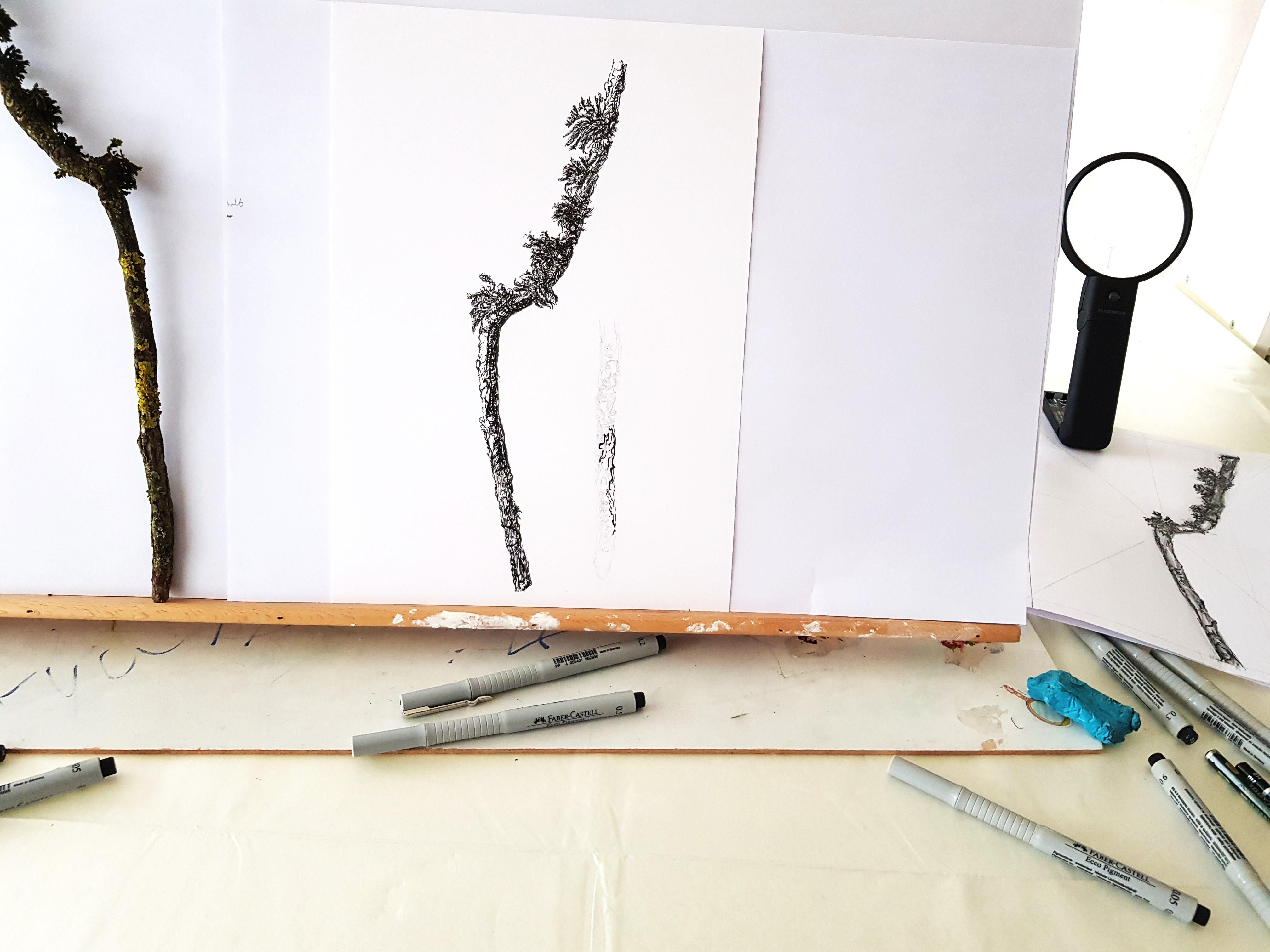 Drawing textures with pen and ink.