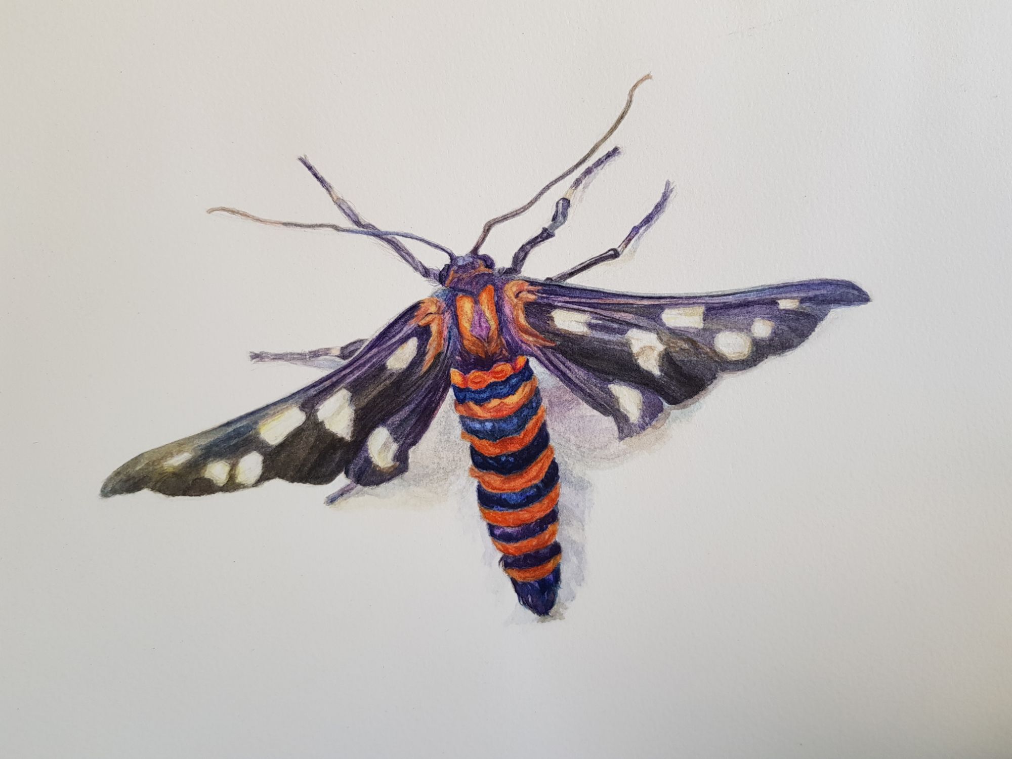 Careful drawing first, started with highlights, then modelling with half tones, adding form and cast shadows in the end.